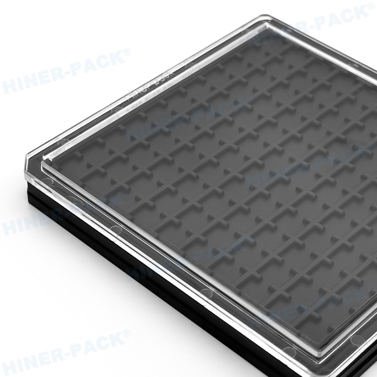 Hiner-pack waffle pack cover/lid prevents die from migrating out of waffle pack/chip tray pockets during shipping and handling. Designed to work with standard clips that tightly compresses the tray and lid to prevent die migration.
